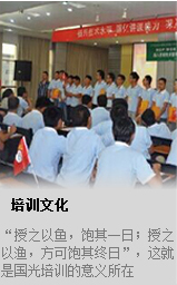 董事長原來是師范校的教師,他把教書育人也帶到了國光企業(yè),從創(chuàng)業(yè)初期就重視對員工進行培訓(xùn),而且還編寫技術(shù)資料對經(jīng)銷商和用戶進行培訓(xùn)。早年的手寫保鮮劑資料就是一個例證,創(chuàng)業(yè)至今從沒有停止過對員工和用戶的培訓(xùn),每年新生入公司要進行至少一個月的培訓(xùn),員工每兩個月要培訓(xùn)一次,年底全體員工還要學(xué)習(xí)培訓(xùn)近一個月。不僅對員工是這樣,國光每年 還把經(jīng)銷商、種植戶請到公司來培訓(xùn)學(xué)習(xí)。國光每年10月份起各種培訓(xùn)會議就不斷。這種學(xué)習(xí) 文化、學(xué)習(xí)型企業(yè)不僅培養(yǎng)了大量的優(yōu)秀員工和經(jīng)銷商,還給種植戶和同行留下了深刻的印象, 稱國光是業(yè)內(nèi)的黃浦軍校。