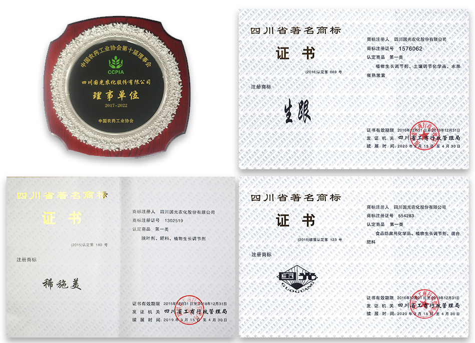 “國光”商標(biāo)是1992年經(jīng)國家工商總局商標(biāo)局核準(zhǔn)注冊(cè)的商標(biāo),并在美國、法國、俄羅斯、越南等國辦理了涉外注冊(cè),2000年獲得資陽地區(qū)知名商標(biāo),2002年獲得四川省著名商標(biāo)。