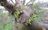 青花椒自然生長狀態(tài)下的萌芽是從枝條的形態(tài)學上端到形態(tài)學下端逐步萌動的,導致自然狀態(tài)下青花椒的開花只有上半部分處在時期正常能形成有效的產量,而下半部分的花芽開放的時候已經明顯偏晚導致最后采摘的時候花椒因脫落嚴重而不能形成產量。