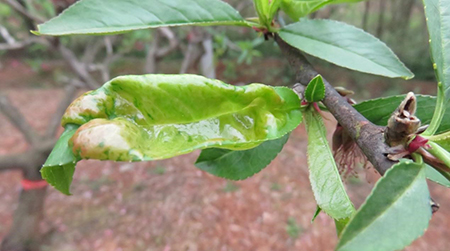 桃樹縮葉病是春季常見的一種病害,桃樹染病引起葉片腫脹皺縮,嚴(yán)重時(shí)病葉干枯脫落,對(duì)產(chǎn)量和品質(zhì)有較大的影響,還會(huì)影響花芽形成和來年的產(chǎn)量。