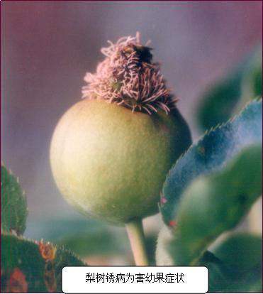 在病斑出現(xiàn)橘黃色黏液時噴施梨膠銹菌重寄生菌等,可以寄生消解梨銹病的病菌,從而逐年減輕銹病的危害。