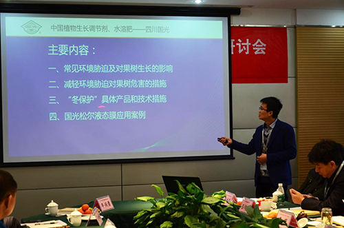 2016年12月3日,由中國(guó)農(nóng)藥發(fā)展與應(yīng)用協(xié)會(huì)植物生長(zhǎng)調(diào)節(jié)劑專(zhuān)業(yè)委員會(huì)主辦,國(guó)光股份承辦的“植物生長(zhǎng)調(diào)節(jié)劑新應(yīng)用、果樹(shù)冬保護(hù)專(zhuān)題研討會(huì)”在四川成都召開(kāi)。全國(guó)農(nóng)業(yè)技術(shù)推廣服務(wù)中心農(nóng)藥與藥械處處長(zhǎng)王鳳樂(lè)、中國(guó)農(nóng)藥發(fā)展與應(yīng)用協(xié)會(huì)副秘書(shū)長(zhǎng)花榮軍、全國(guó)農(nóng)業(yè)技術(shù)推廣服務(wù)中心防治處高級(jí)農(nóng)藝師李萍、中國(guó)農(nóng)藥發(fā)展與應(yīng)用協(xié)會(huì)植物生長(zhǎng)調(diào)節(jié)劑專(zhuān)業(yè)委員會(huì)主任胡興啟、中國(guó)農(nóng)業(yè)大學(xué)農(nóng)學(xué)院教授、長(zhǎng)江學(xué)者、植物生長(zhǎng)調(diào)節(jié)劑專(zhuān)家段留生以及四川、河南、山東、江蘇、陜西、福建、湖南、湖北、廣西等省的省植保站站長(zhǎng)、省農(nóng)業(yè)科學(xué)院、林業(yè)科學(xué)院的研究員、教授等17人參加研討。