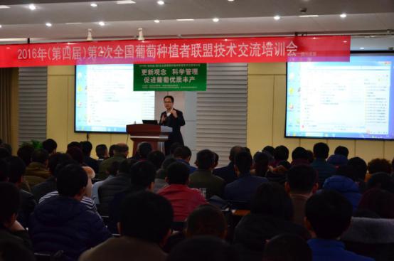 2016年12月19日-28日,第四屆(第1次,第2次)全國(guó)葡萄種植者聯(lián)盟技術(shù)交流培訓(xùn)會(huì)在國(guó)光召開(kāi),來(lái)自全國(guó)的葡萄種植戶(hù)、葡萄協(xié)會(huì)代表、經(jīng)銷(xiāo)商、零售商350余人參會(huì)。中國(guó)農(nóng)學(xué)會(huì)葡萄分會(huì)會(huì)長(zhǎng)、北京農(nóng)學(xué)院教授、全國(guó)知名葡萄專(zhuān)家晁無(wú)疾;國(guó)家葡萄產(chǎn)業(yè)技術(shù)體系崗位科學(xué)家、中國(guó)農(nóng)學(xué)會(huì)葡萄分會(huì)副會(huì)長(zhǎng)、上海交大教授王世平出席會(huì)議。