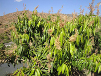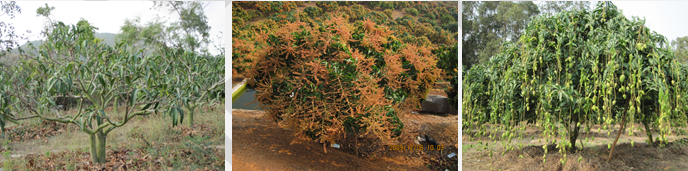 修剪不到位導(dǎo)致枝梢老化程度不夠,開(kāi)花結(jié)果差 修剪不到位導(dǎo)致枝梢過(guò)長(zhǎng)、樹(shù)型差、產(chǎn)量低、大小年嚴(yán)重早中熟芒果(海南、廣西)結(jié)果母枝培養(yǎng)一般都一般控制在兩蓬梢。在生產(chǎn)中借助土埋多效唑和葉面控梢的處理基本能實(shí)現(xiàn),如果出現(xiàn)沖梢,即可以藥物方式處理。中晚熟芒果由于一般沒(méi)有進(jìn)行控梢處理,所以抽梢比較不統(tǒng)一,梢體一般在前一蓬梢老熟半月左右后又自然抽出一蓬,平均抽梢4-5蓬,甚至有6蓬以及以上的抽梢情況。在中晚熟芒果產(chǎn)區(qū)見(jiàn)到的長(zhǎng)梢樹(shù)體則因?yàn)榇恕?/span>