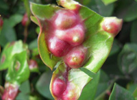 在每年10-11月份,僑蚜遷回蚊母上產(chǎn)生孤雌胎生有性蚜,有性蚜覓偶交配產(chǎn)卵在葉芽?jī)?nèi),在蚊母芽萌動(dòng)的3月中下旬卵開始孵化,卵孵化盛期為3~4天,初孵干母在蚊母樹葉背面取食,使葉片產(chǎn)生球形癭瘤;干母在蟲癭內(nèi)取食生活至發(fā)育成熟,4月下旬至5月上旬成熟干母在蟲癭內(nèi)孤雌生殖產(chǎn)生有翅遷飛蚜,每干母可孤雌胎生50多頭,6月上旬,癭瘤破裂,有翅遷飛蚜飛出,遷往越夏寄主。